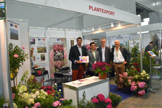 Bonjour! Il y a quatre firmas horticole qui travaille ensemble comme Plantexport pour realiser les exports a la France. In the photo Alain Sauve (chrysants), Lionel Chauvin (hortensia / hydrangea), Eric Renault and Jean Loup Pohu.