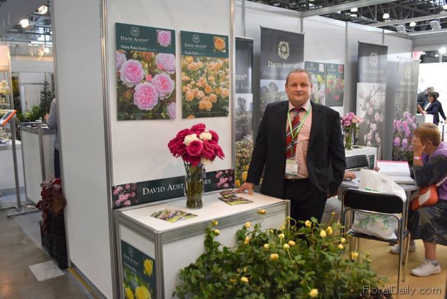 Robert Corbett of David Austin Roses, presenting several garden roses. The company was the only UK business on the exhibition and even though Robert can understand why, especially with Brexit and the complicated new plant material rules, he still thinks it’s very important to show and participate in markets outside the UK.