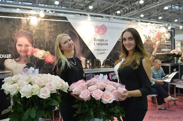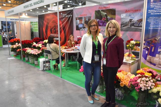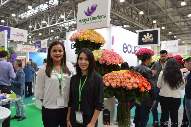 Maria Puga and Luz Marina Proano of Azaya Gardens. They grow roses in Ecuador and are supplying 80 percent of their volumes to the Russian market. Compared to last year, their volumes increased by 10 percent and reached the same volume as before the crisis. The prices, however, did not reached the same level, and especially the ones of the shorter stems.