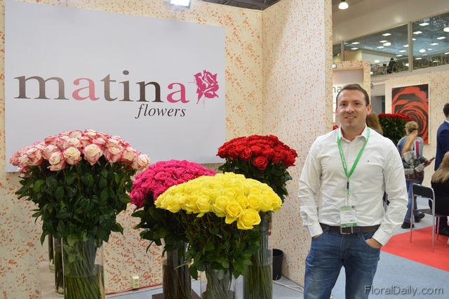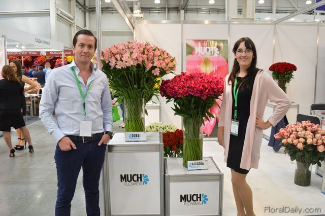 Catalina and Diego of ALexandra Farms. This year, they have a larger booth and are presenting around 40 different garden type roses of which 14 David Austin roses. They started to supply the RUssian market 5 years ago and they supply this market in the winter (in summer, they mainly supply the US for the wedding season). A garden type rose is quite a new product to the Russians, so they partnered with Premier to teach their clients how to work with these flowers. Recently, they also started to work with Moscow Flowers School to teach florist how to use these flowers. Over the years, they have seen the demand increasing.