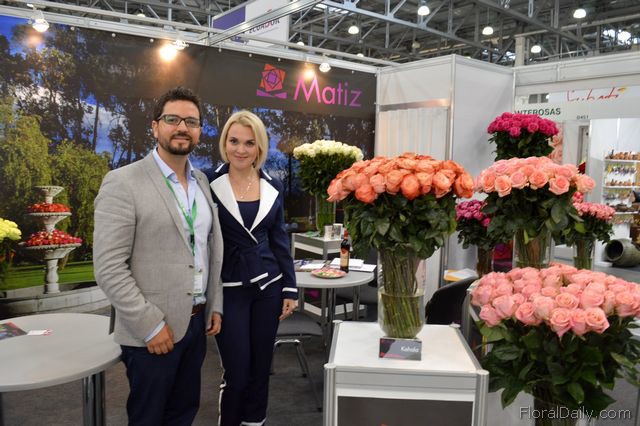 David Espinosa and Natalya Pykanova of Matiz, a Ecuadorian rose grower. This year, they had more or less the same year as last year, regarding demand. According to Espinosa, the prices were a bit better due to the more stable ruble.