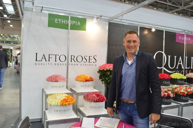 Rob Brussee of Lafto Roses. This Ethiopian farm is exhibiting at the show for the first time.
