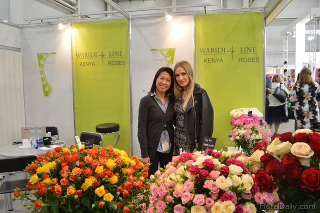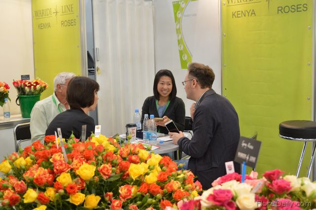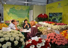 Zing Yeo and her translator Carolina of Waridi Line. After a break of two years, they are now back at the show again. Even after the ruble collapsed, they increased their sales to Russia. Their spray and cluster roses are the most demanded roses in Russia. Next to supplying their own roses, they also consolodate the shipment with flowers of other farms. In this way, we can offer our smaller clients a broad assortment of flowers.
