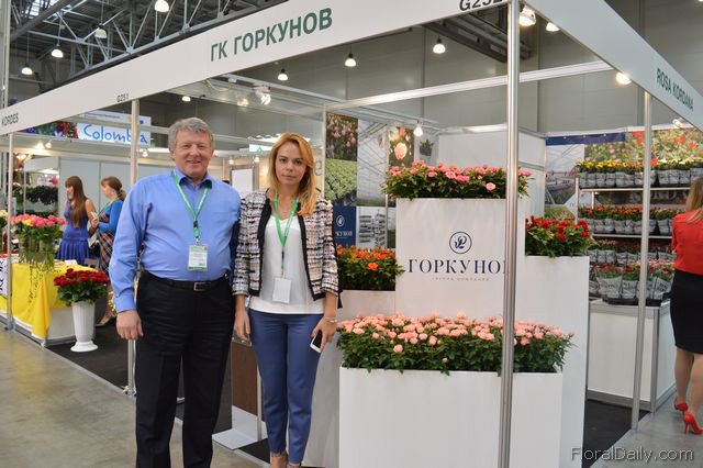 Alexander Litvinenko and Scitlana of Group of Companies. This company is mainly specialized in the production of vegetables, but started to cooperate with German breeder Kordes and Danish pot rose grower RosaDanica to establish a greenhouse for pot rose production. Since July they have put the first pot roses (Kordana's) on the Russian market and they are pleased with the demand. More on this later in FloralDaily.