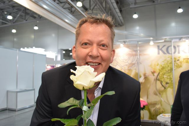 Guido Zwart, agent of two Kenyan farms; Mount Elgon Collection and Kismima. He is presenting Charmant. A rose variety bred by Kordes and they have the exclusive right to grow this variety till 2020. It is a difficult variety to grow, but the owner of Mount Elgon Collection managed to do it. Also in Russia, this variety is selling well. More on this later on FloralDaily.com.