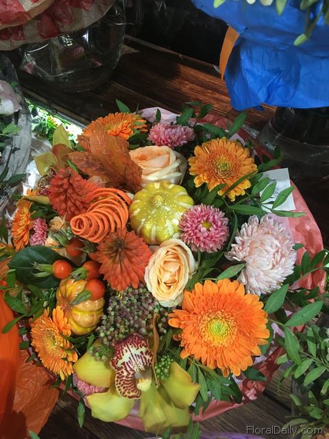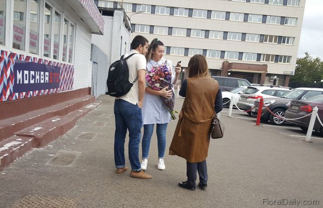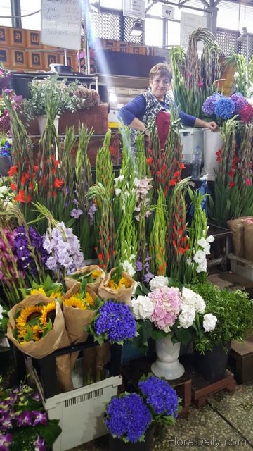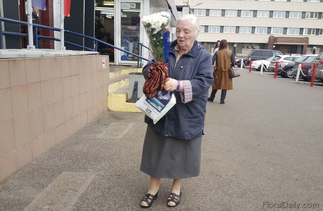 This lady is proud of her bunch of colorful lisianthus that she bought at the Riga Market.
