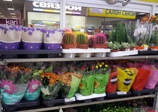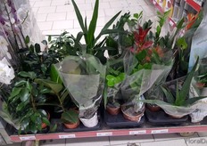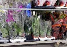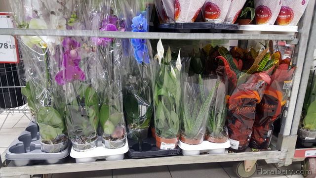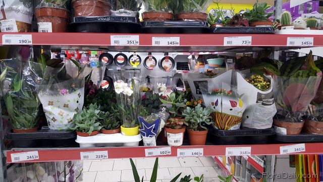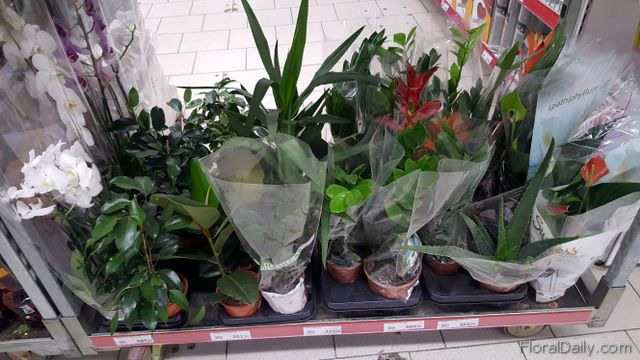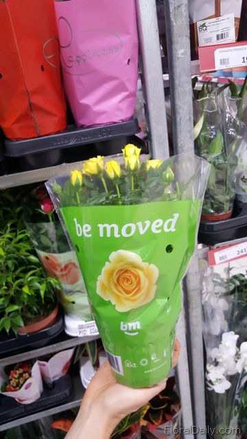 Pot roses of Dutch rose grower BM roses in the supermarket.