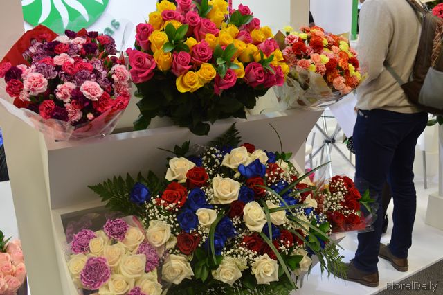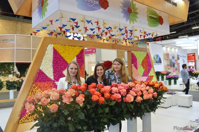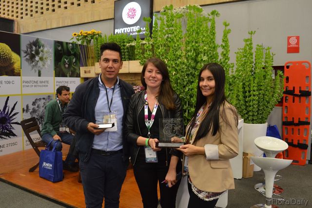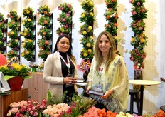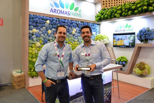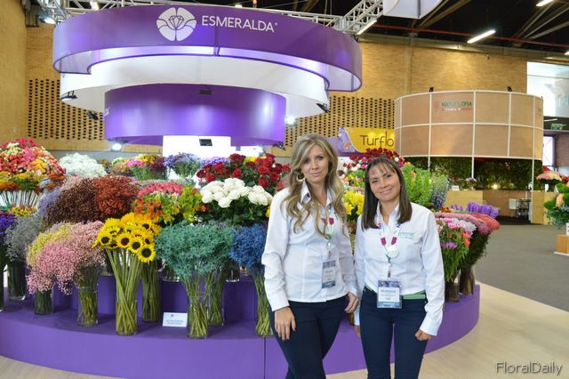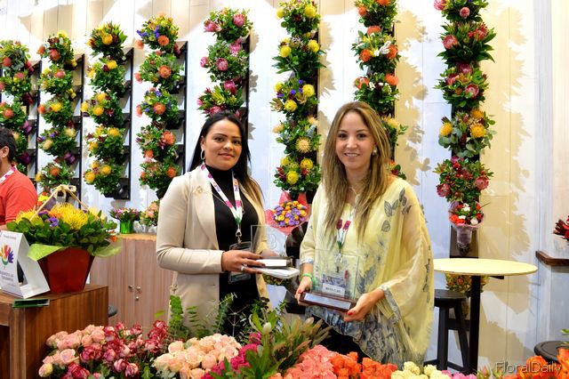 "Veronica Acevedo and Lina Jaramillo of Galleria Farms won the first price in the category "Best Booth". This Colombian farm grows roses and alstroemerias in Bogota and Chrysanthemums and hydrangeas in Medillin."
