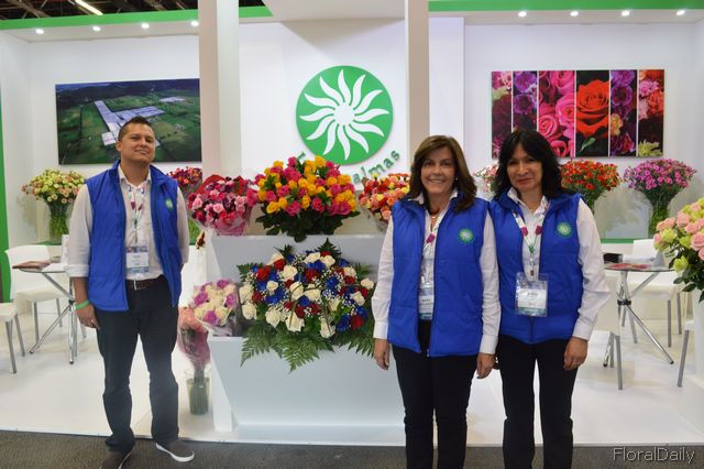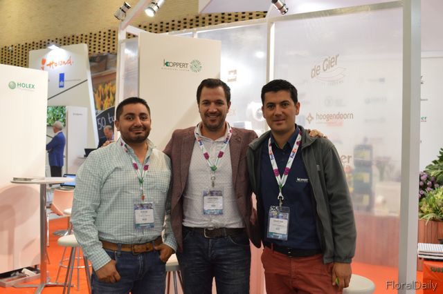 "Xavier Beltran, Veronica Soria and Carlos Diez of Florecal. Florecal is attending the Proflora to meet their customers. "90 percent of our US customers are visiting this show", says Beltran."