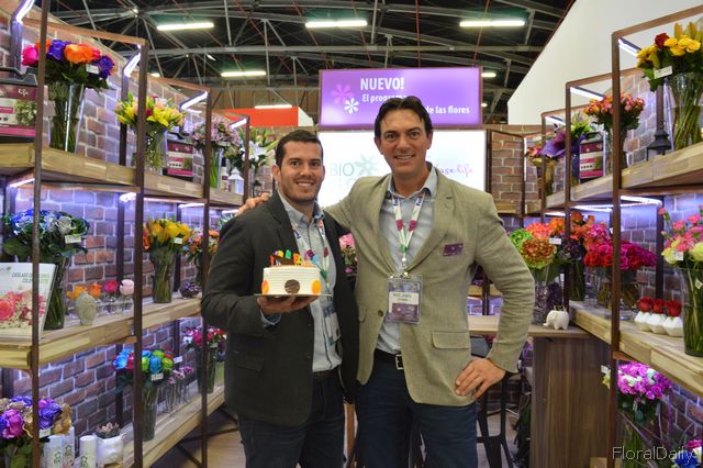 David Jaramillo of Bioflora and Nick MacDonald of Vaselife. Recently, Bioflora became the business partner of Vaselife in Colombia. Vaselife now also has a production location in Colombia. Therefore, no shipments around the world are needed anymore, which is better for the environment and the local economy. Bioflora is a very established company in Colombia and is, according to MacDonald, the market leader in all paints and dies that are being used in bouquets. They are already supplying farms and are therefore seen as the ideal business partner for Vaselife.