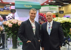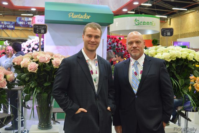 Son and father Krell of Plantec Ecuador at the Plantador booth. Plantador represents Kordes, Interplant, Grandiflora, Delbard and Scea Rosaplant in Colombia and Plantec in represents them in the rest of South America.