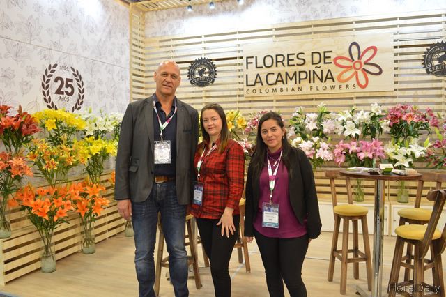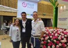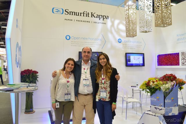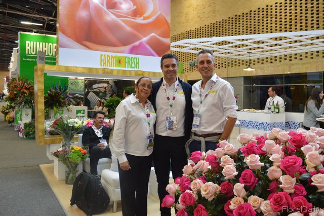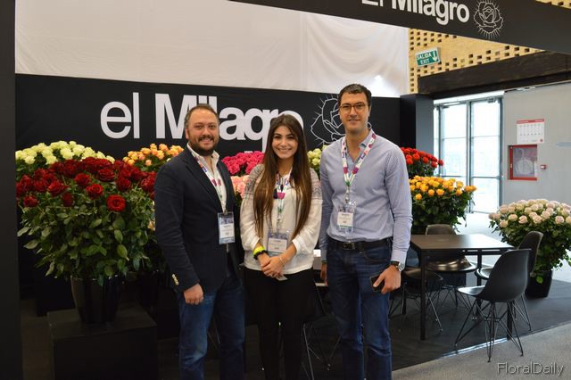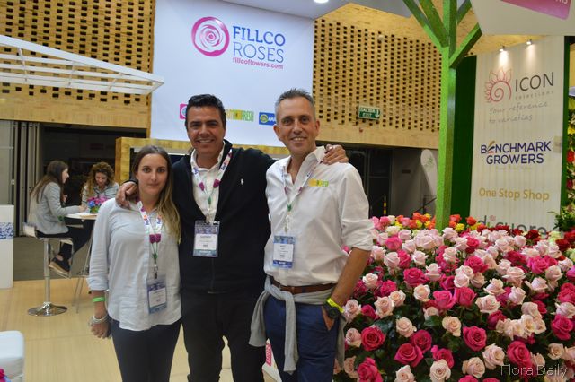 Caroline Ospina, Santiago Laverde of Filco Roses and Mark Frank of Mark Frank. Mark designed the booth of Filco Roses.