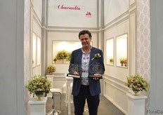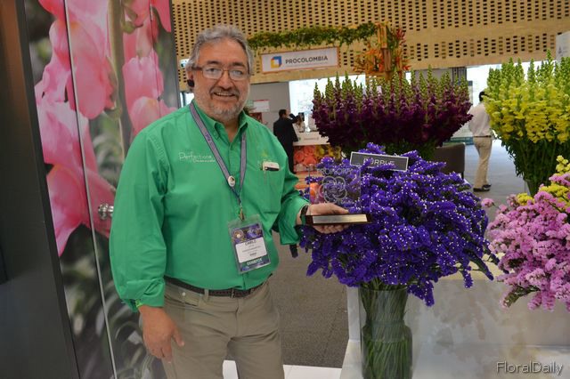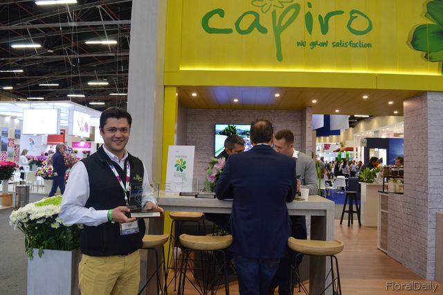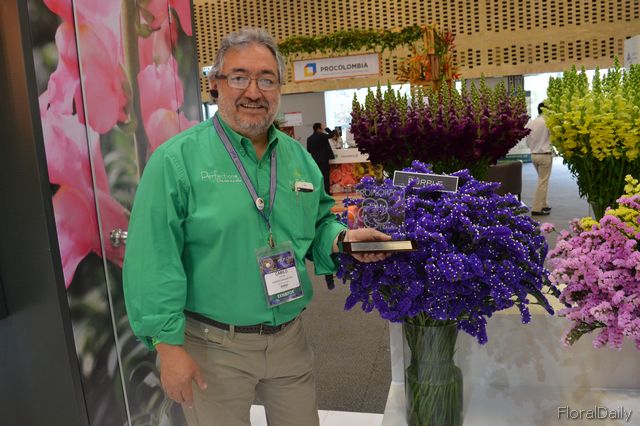 "Juan Camilo Herrera of Jardines de los Andes. This Colombian grower won the highest award 'Grand Champion' for its Charmelia over all other flowers in the competition and the first place for the "Best in Category"."