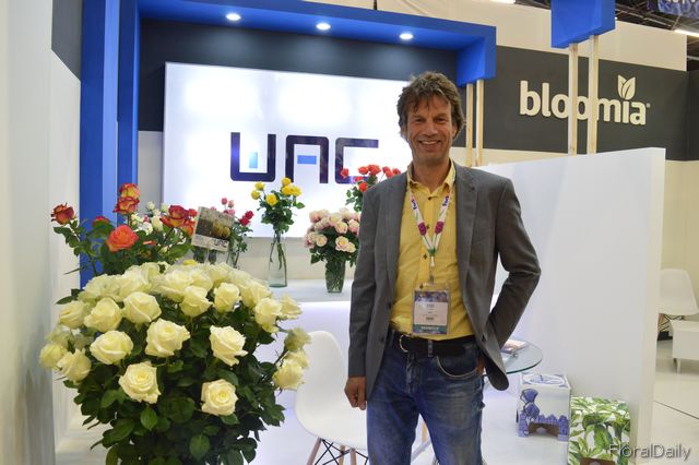 "Edo Kolmer Agriom, a Dutch flower breeder represented by WAC international. At their booth, the Vanilla Ice took the center stage. According to Kolmer, this variety is currently planted at several farms and is gaining momentum. "It is a highly productive variety and is well suited for bouquets."