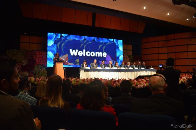 Augusto Solano, CEO of Asocolflores is welcoming everyone.