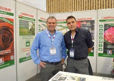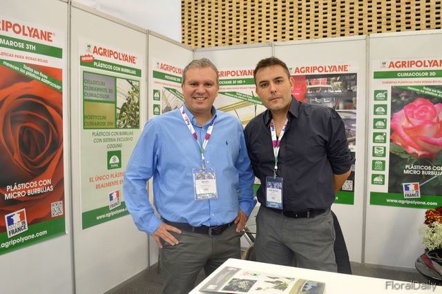 "Michel Da Costa and Jose Gongora of Agripolyane. This French company is eager to supply the Colombian growers with their films and are therefore exhibiting at the Proflora for the first time. "Due to our expertise in East Africa, we are now ready to give new solutions to South American growers, starting in Colombia."