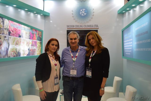 Sandra Gallego, Mauricio Gleiser and Sandra Ruiz of Vacuum Cooling. They are exhibiting at the Proflora from the very beginning and are stressing the importance of vacuum cooling in Bogota (and not Miami) to the US buyers.