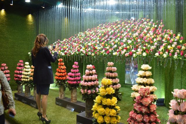 Impressive decoration of roses at the booth of Rosen Tantau.