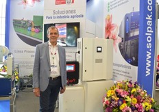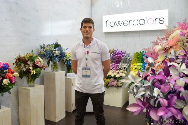 Julian Vargas of Flower Colors. This Medillin based company produces paint for flowers. According to Vargas, the demand for painted flowers increased over the last years. 5 years ago, around 5 to 10 percent of a farm's production consisted out of painted products, now some farms even have 50 percent of their products painted.