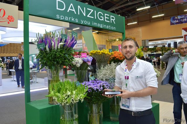 "Ohad Shafran of Danziger with the first prize "Best in Category" for their Scabiosa in the category semi focal diversified."