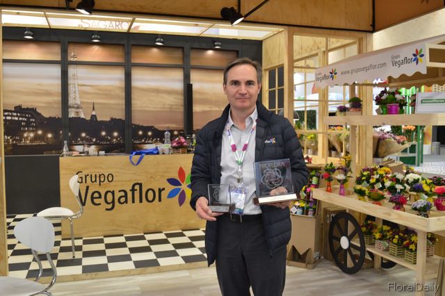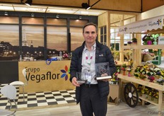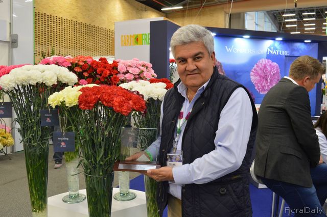 "Miguel Vasquez of Grupo VegaFlor. He grows around 60 varieties of spray and single Chrysanthemums in a 64 ha sized greenhouse in Colombia. For their spray chrysanthemum Veronica, they received the first prize "Best in category" in the category growers- spray chrysanthemums. In the same category, they also won the third prize for their variety Minion."