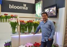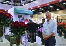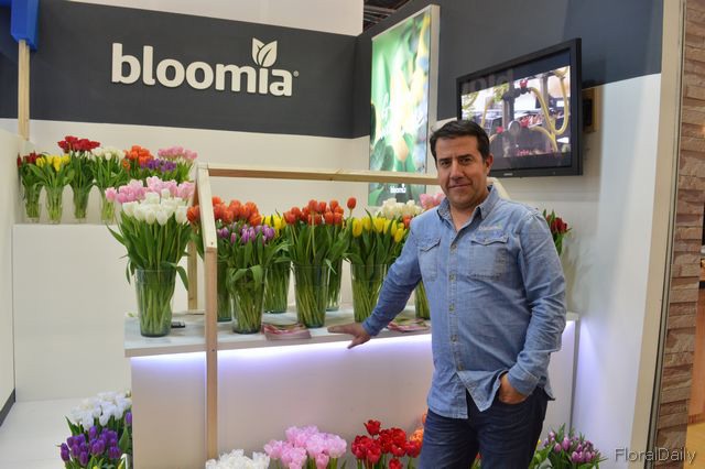 Andres Cares of Bloomia. He grows tulips hydroponically in Chile and produces 50,000 stems a week and mainly exports them to Peru, Panama, Bolivia, Colombia and the USA. He is exhibiting at the Proflora for the first time.