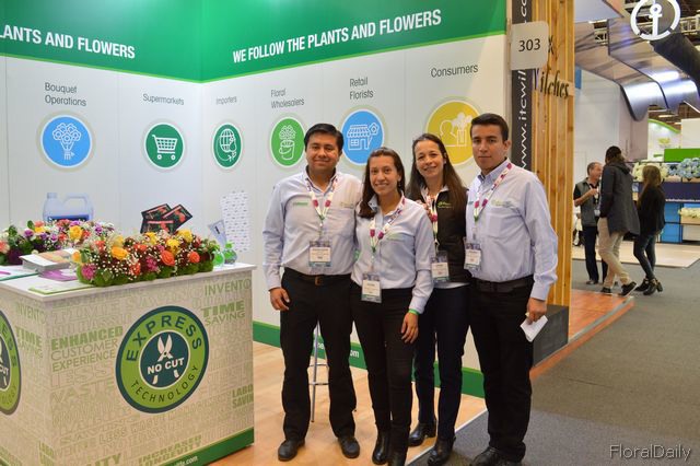 The team of Oasis Floralife promoting their Express Technology on farm level, after transportation and for the final customer. Bottom line of the technology is that the flowers do not have to be recut.