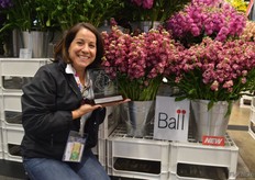 "Lourdes Reyes of Ball with their second prize "Best in Category" with their Stock Spray Vintage Rose in the category Breeder - Semi focal others."
