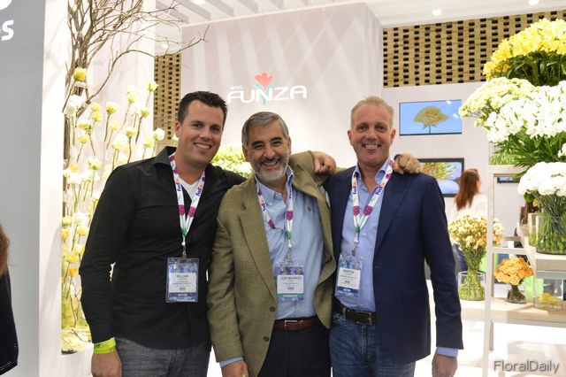 "Rosy Walter and Carlos Mahecha of Farm Fresh qith Mark Frank of Mark Frank. Farm Fresh supplies flowers of Filco Roses and have a wholesale business in Miami. Frank makes ideas for bouquet arrangements that will be made at Filco Roses. Fresh Farms sees the demand for bouquets at supermarkets growing. "Over the last years, we have seen a change in demand; From a present to impulse purchases."
