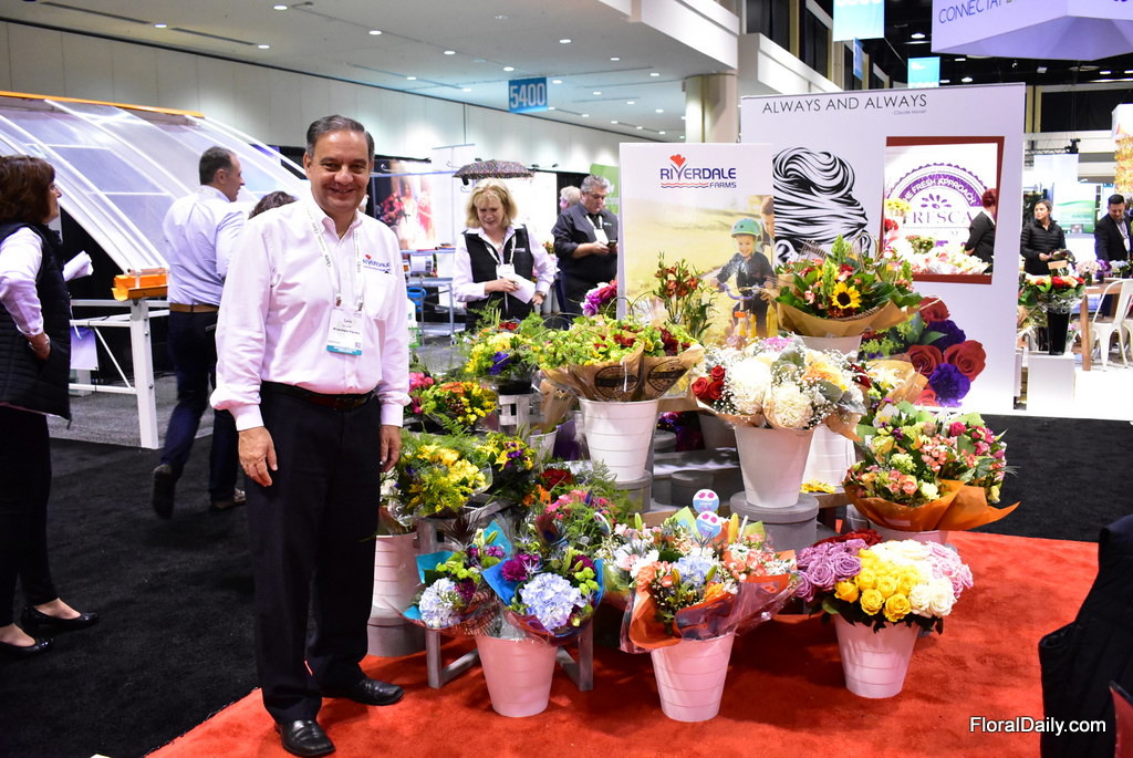 Luis Balcazar of Riverdale Farms. They grow flowers in Colombia and sell them to Europe and the US. In the US, they supply supermarkets. The bouquets are made in Colombia and 90 percent of what they sell is grown at their farm.