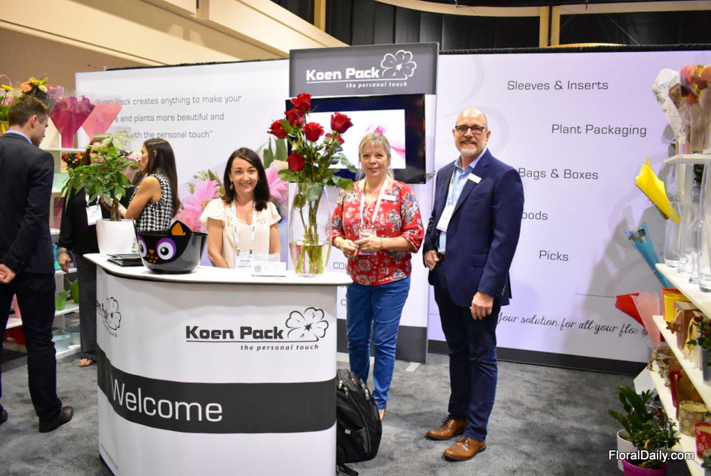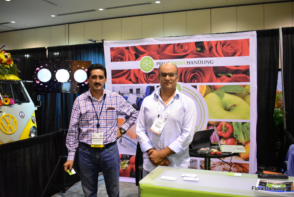Andrew Harris and Paul Harris of Stempro Systems are presenting they cutting machines for retail and processing. According to Andrew, it increases labor efficiency by 30 percent and as it can be can be shipped dry, the shelf life increases. On top of that, with dry pack, three times as much flowers will fit in a truck. They supply their machines all over the US and have plans to expand to Europe in the future. More on these cutting machines later in FloralDaily.