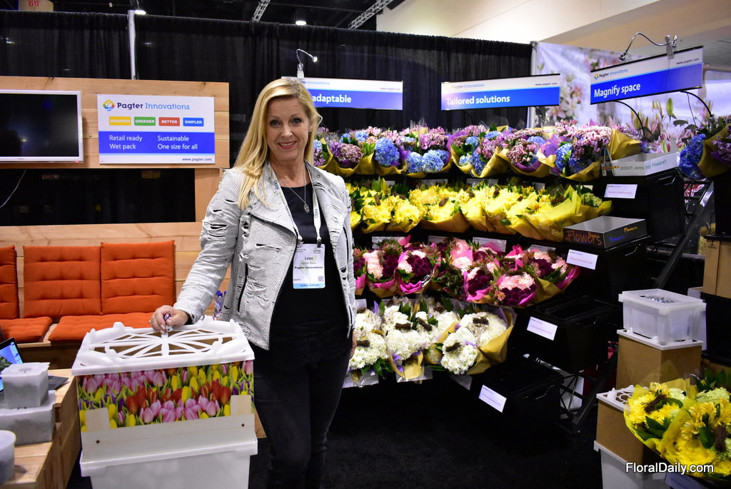 Loes van der Toolen of Pagter Innovations. This Dutch company introduced the Procona containers in the USA, which enabled the West coast growers to ship their flowers to the East coast in good condition. Over the last years, Pagter started to focus on the retail as well and introduced the flower displays for Procona containers. “It is easy to set up and very flexible. With more or less flowers, the display always looks filled. Next to flowers, the display is also suitable for potted plants.” According the reactions from the US retailers so far are very positive and some are already using it.