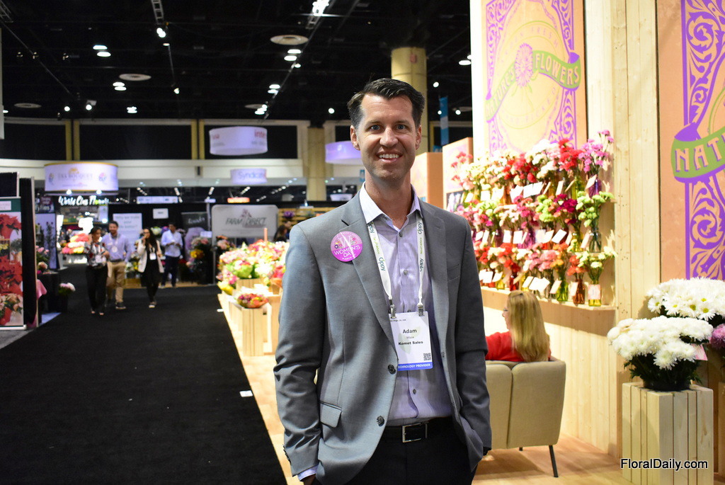 Bas Pellenaars of Dümmen Orange. They are exhibiting at the PMA for the first time to create awareness among growers and importers regarding the wide assortment of Dümmen Orange. Next to cut flowers, they are also presenting Tropical treasures – a conept for tropical plants – and Calanday – their brand for kalanchoes.
