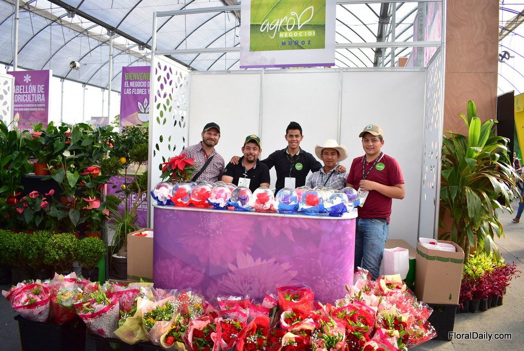 The team of Agro Negocios Muñoz. They grow several flowers and have a flower shop in Mexico City. Next to supplying the Mexican market, they also export their flowers to los Angeles, Las Vegas and Phoenix in the USA. One special product that they were showcasing at the show was the rose in a bowls with water. "It is special water that extends the shelf life to the flower up to one year."