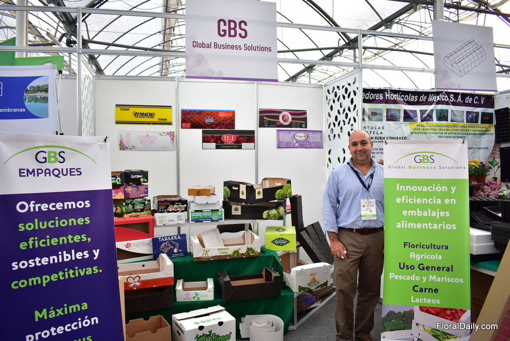 Pedro Calva Bernal of Global Business Solutions presenting cardboard packaging solutions for flowers and other products.