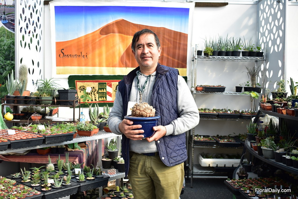 Our neighbourg at the exhibition; Roberto Garay Segura of Sossuvlei. They grow African succulents in San Pedro Cuajimalpa, Mexico. According to Garay, succulents became popular about 10 years ago.