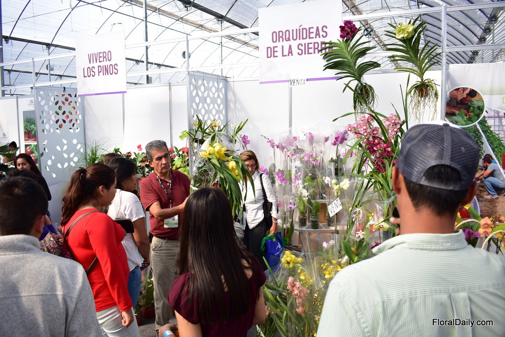 Busy at the booth of Orquideas de la Sierra, a Mexican orchid grower.
