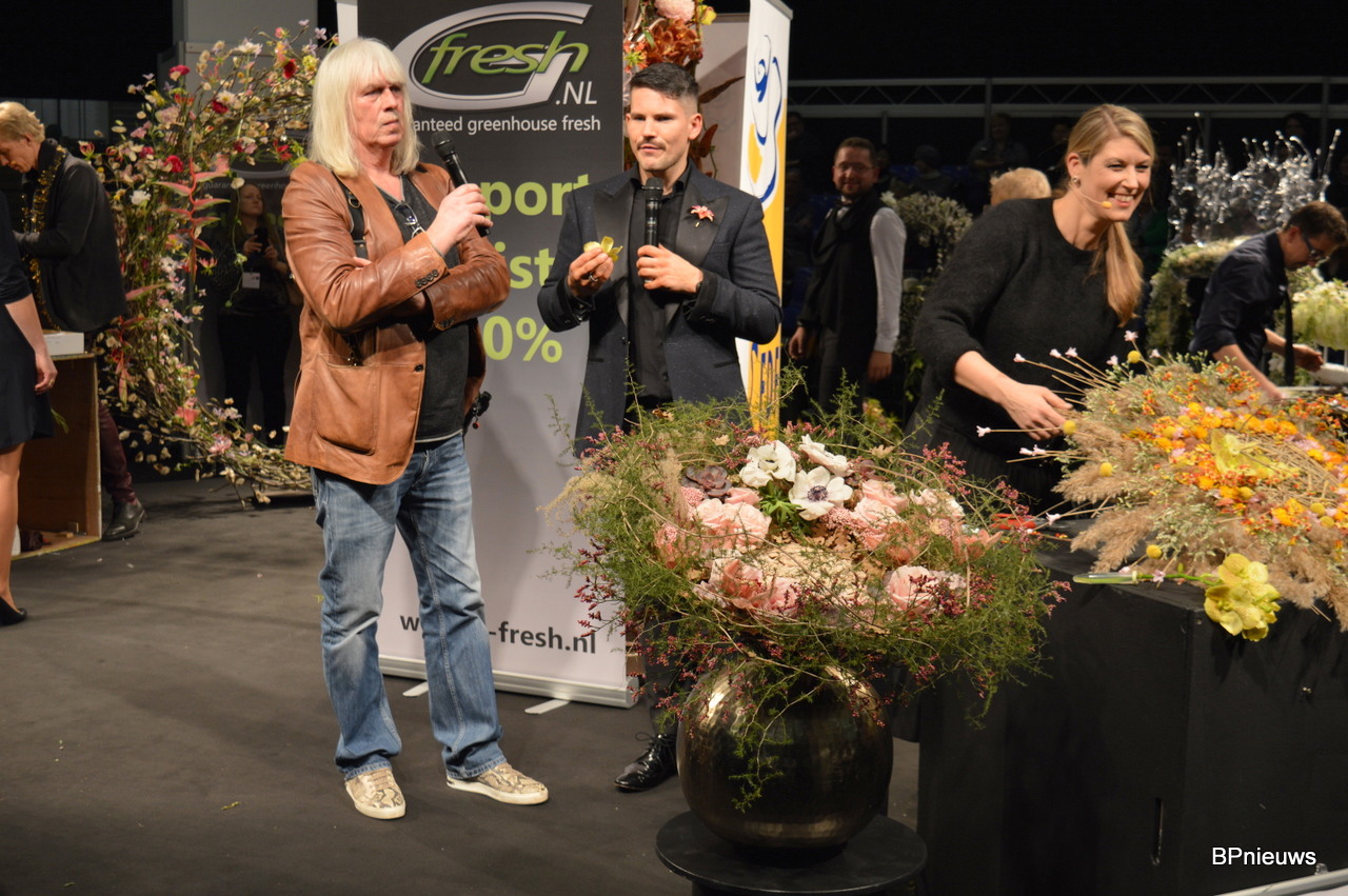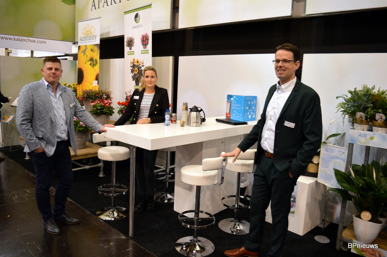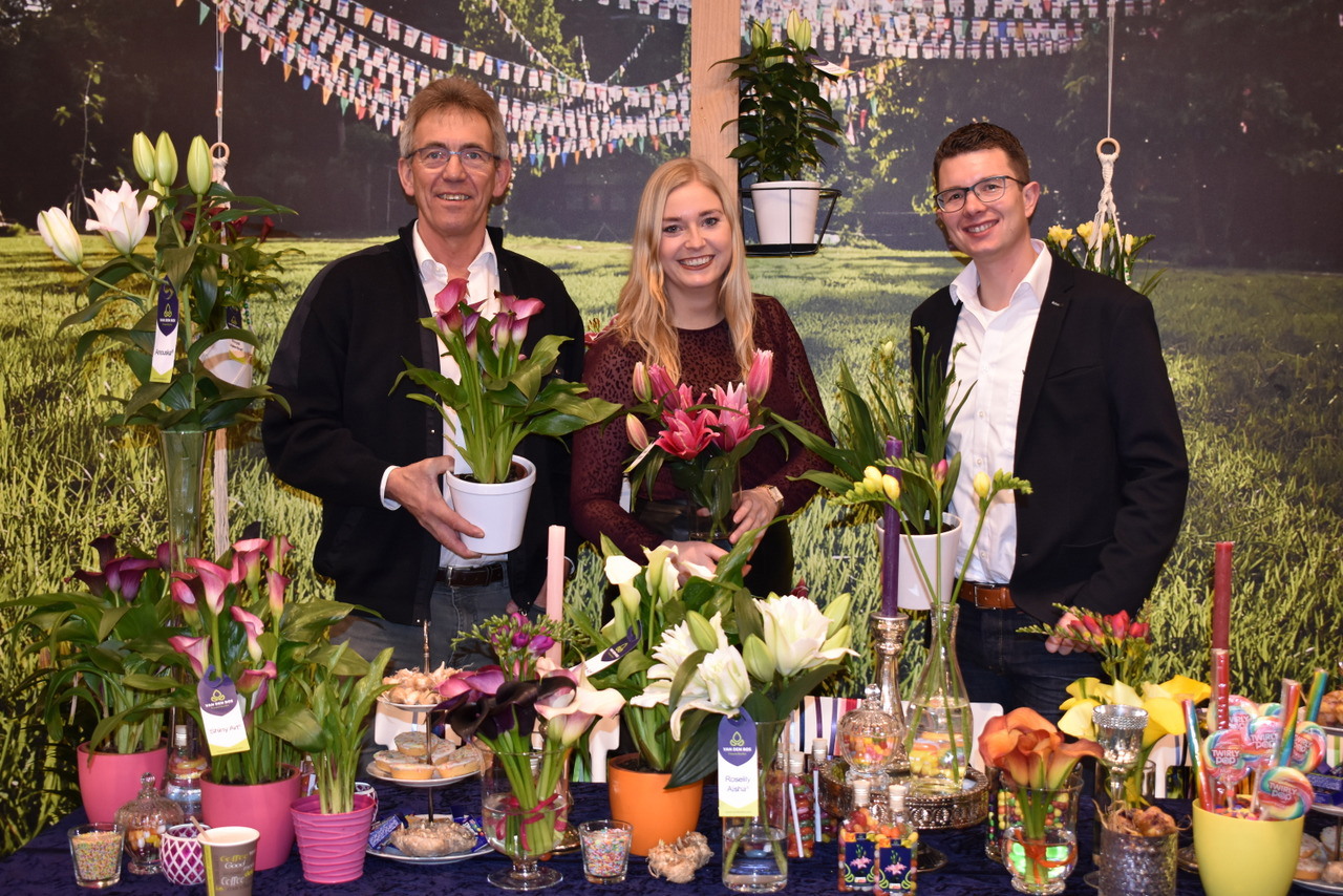 Peet v. Os, Felicia vd Weiden and Daan Vermeer of Van den Bos Flowerbulbs. They show their concept 'Party' to all hungry visitors of this years IPM.