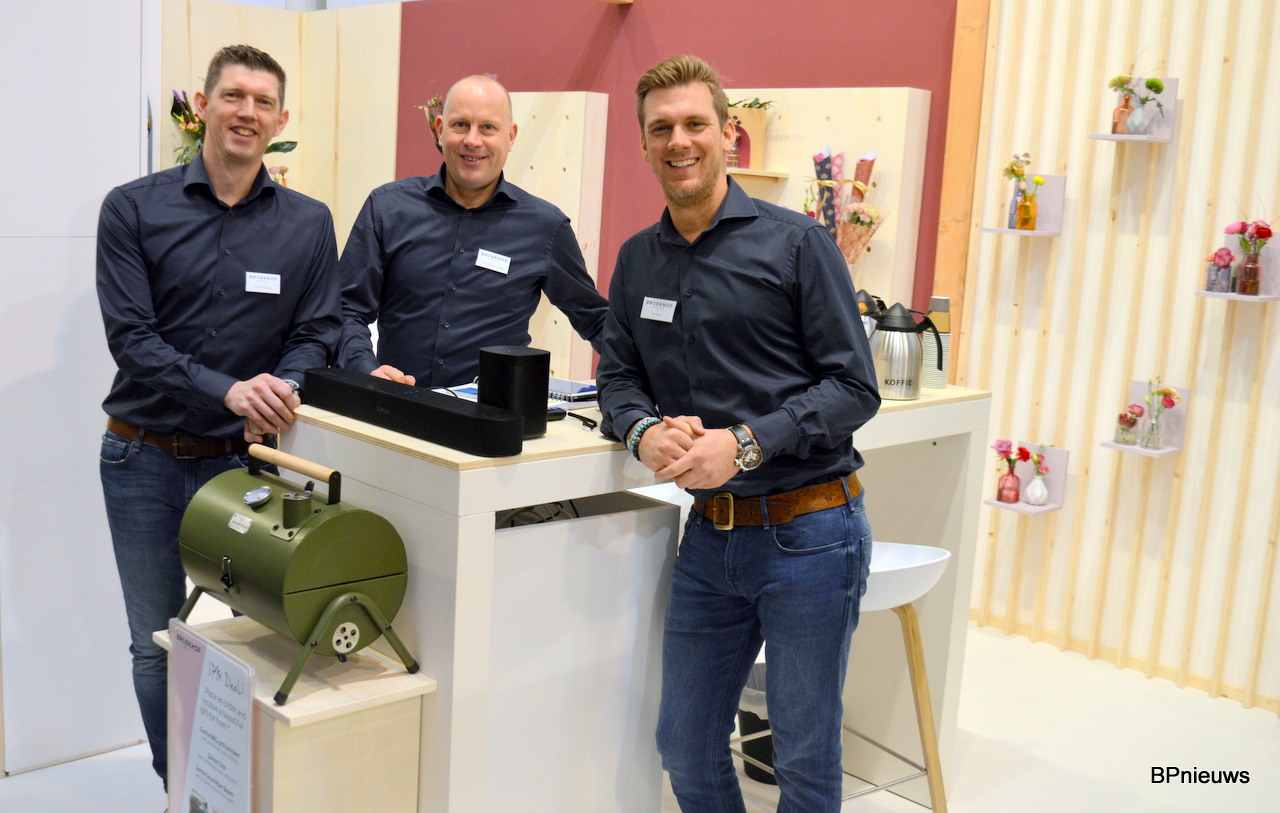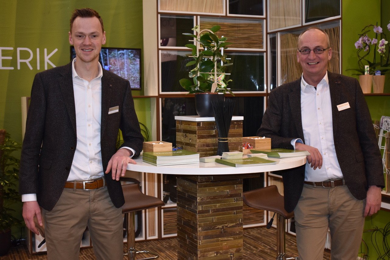 Johan v. Eckeveld and Rene Ratterman of Van Nifterik are busy working out the natural look of their products, as we can see from the bamboo rack at the table.