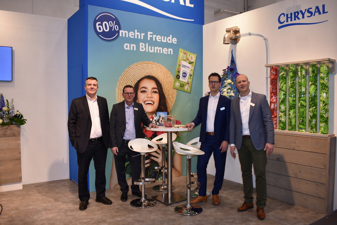Thomas Leithe and Ewald Bouwmeister of Weber Verpackungen with the Bloomguard. Recently, they introduced a longer version of this sleeve; 47 cm.
