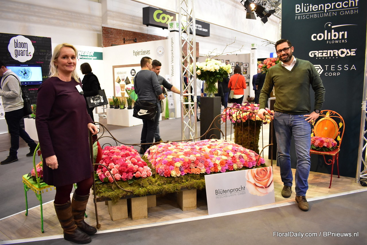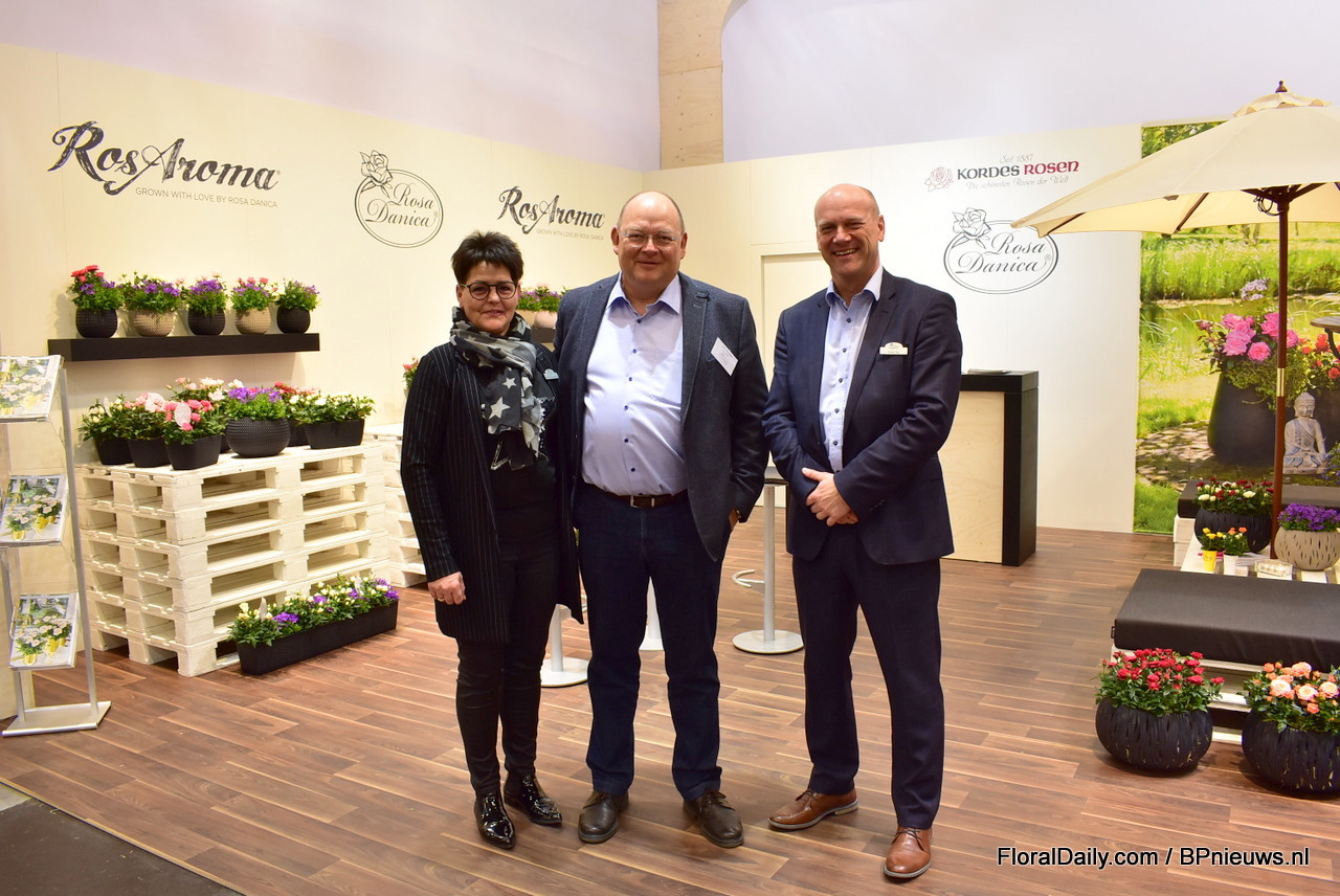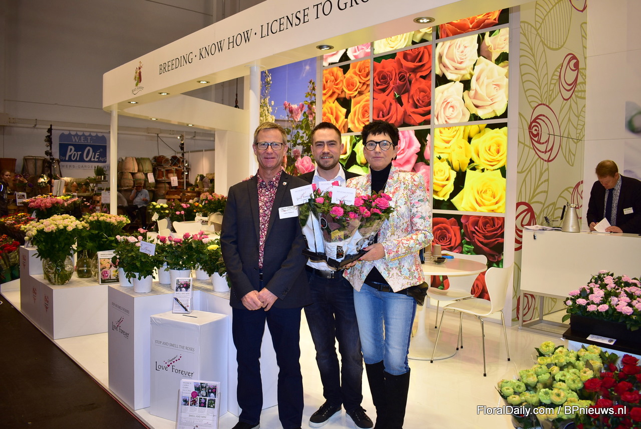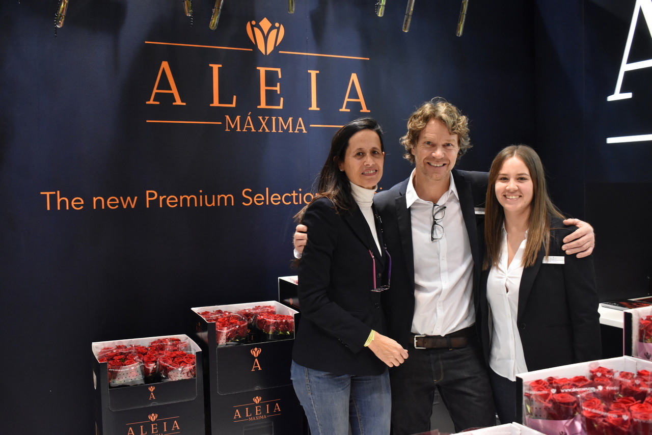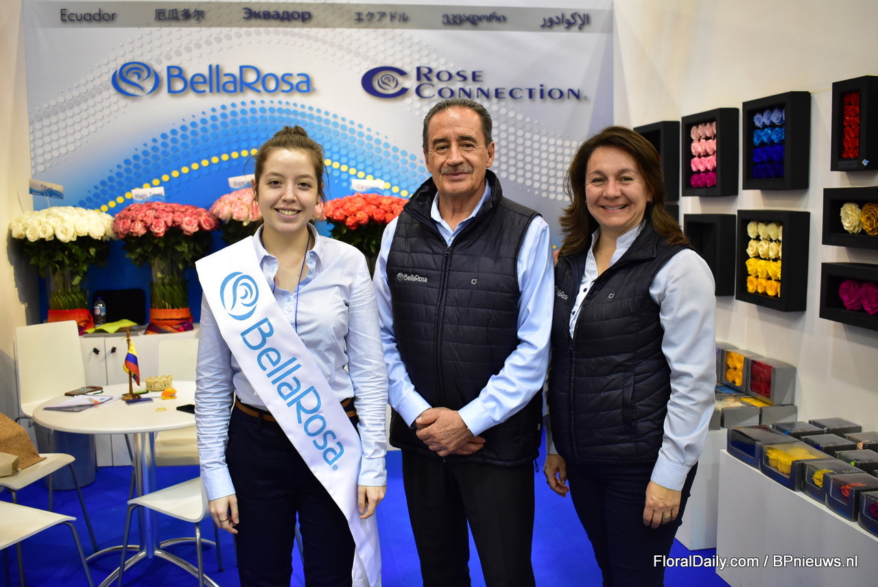 Maria Clara, Gonzalo Luzuriaga and Gabriela Meneses of BellaRose and Rose Connection. This Ecuadorian rose farm is present at the IPM Essen for the first time.