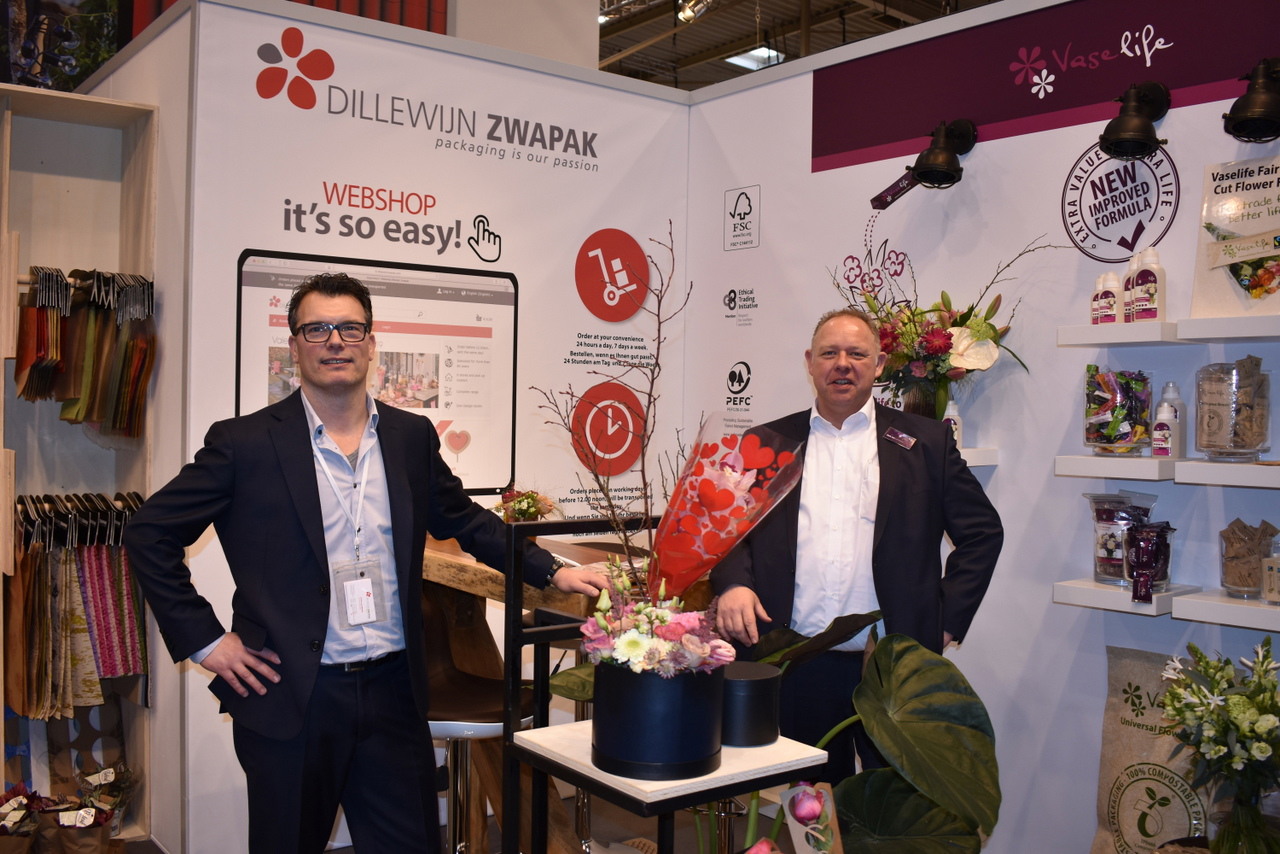 Jeroen v. Dillewijn and Dirk-Jan Lambooy presented amongst other things new Fair Trade flower food and a wide assortiment of sleeves and packaging.