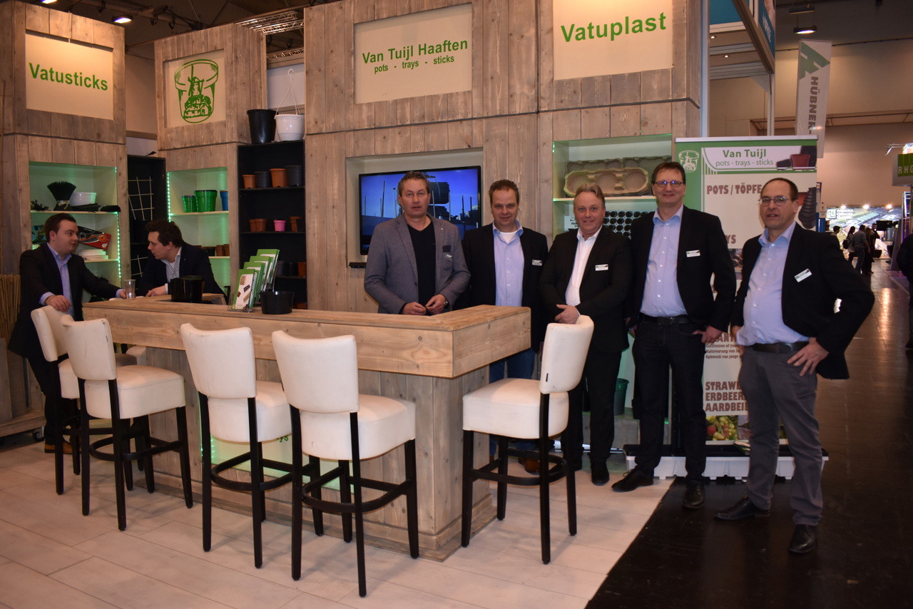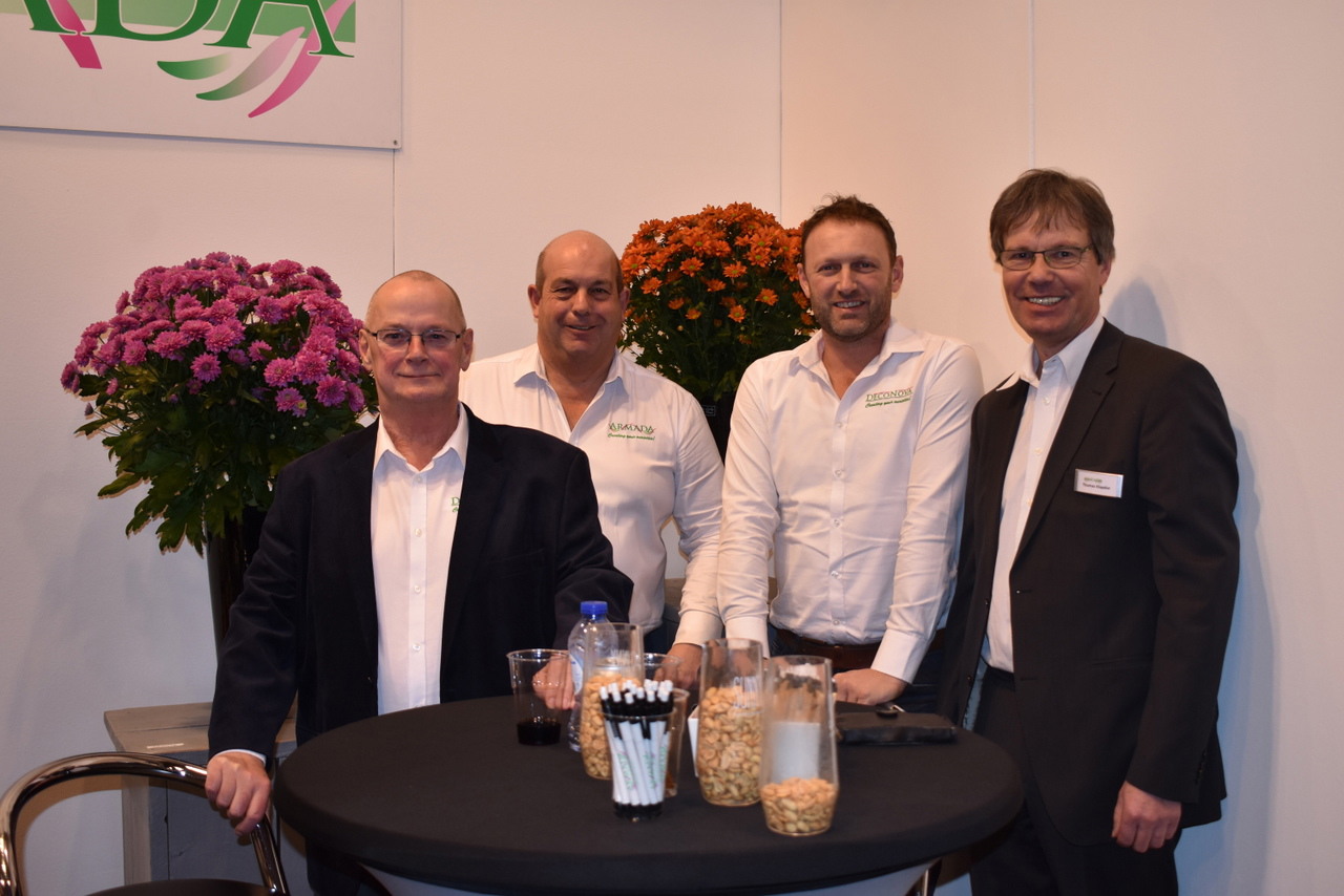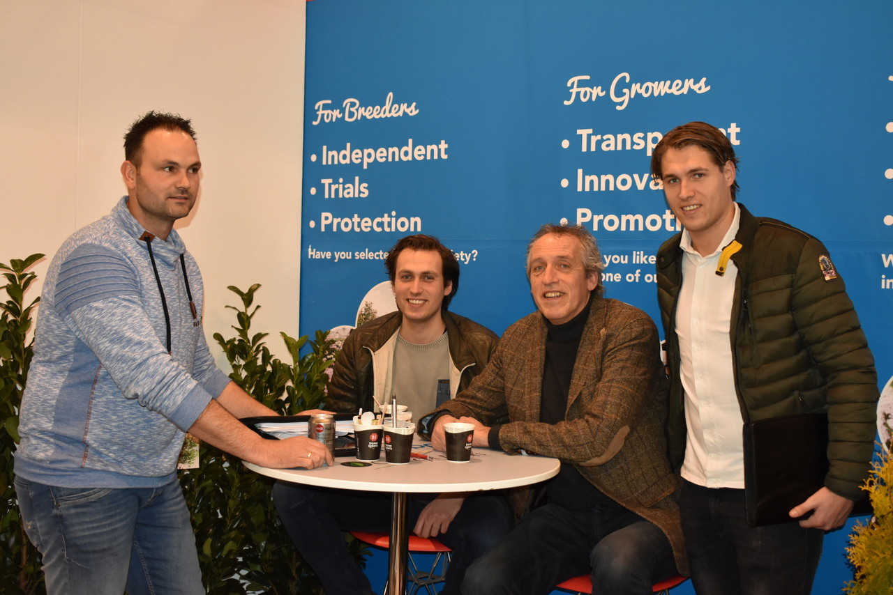 Arjan Hulshoff with De Ruiter Innovations, Matthijs Plas with Modiform and Jelle Posthumus with United Selections and Huub Snijder of De Ruiter Innovations in the United Innovations booth.