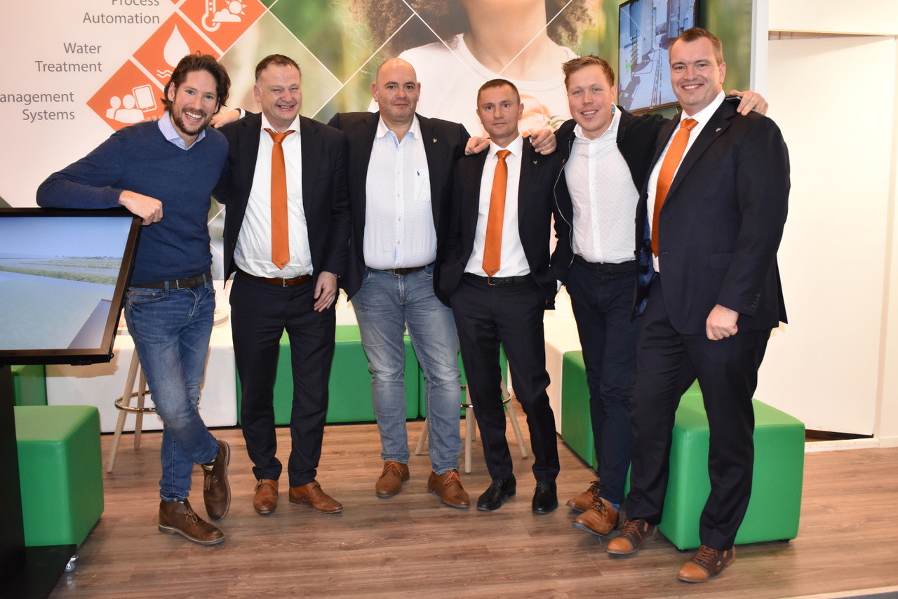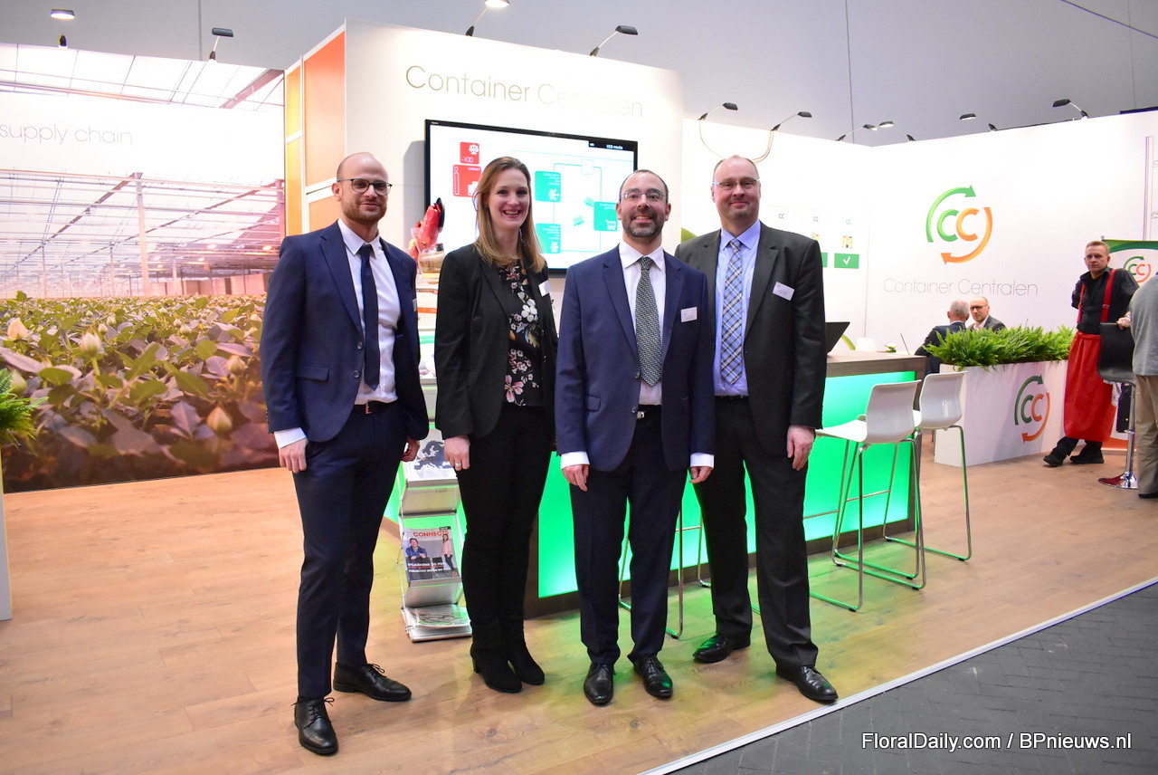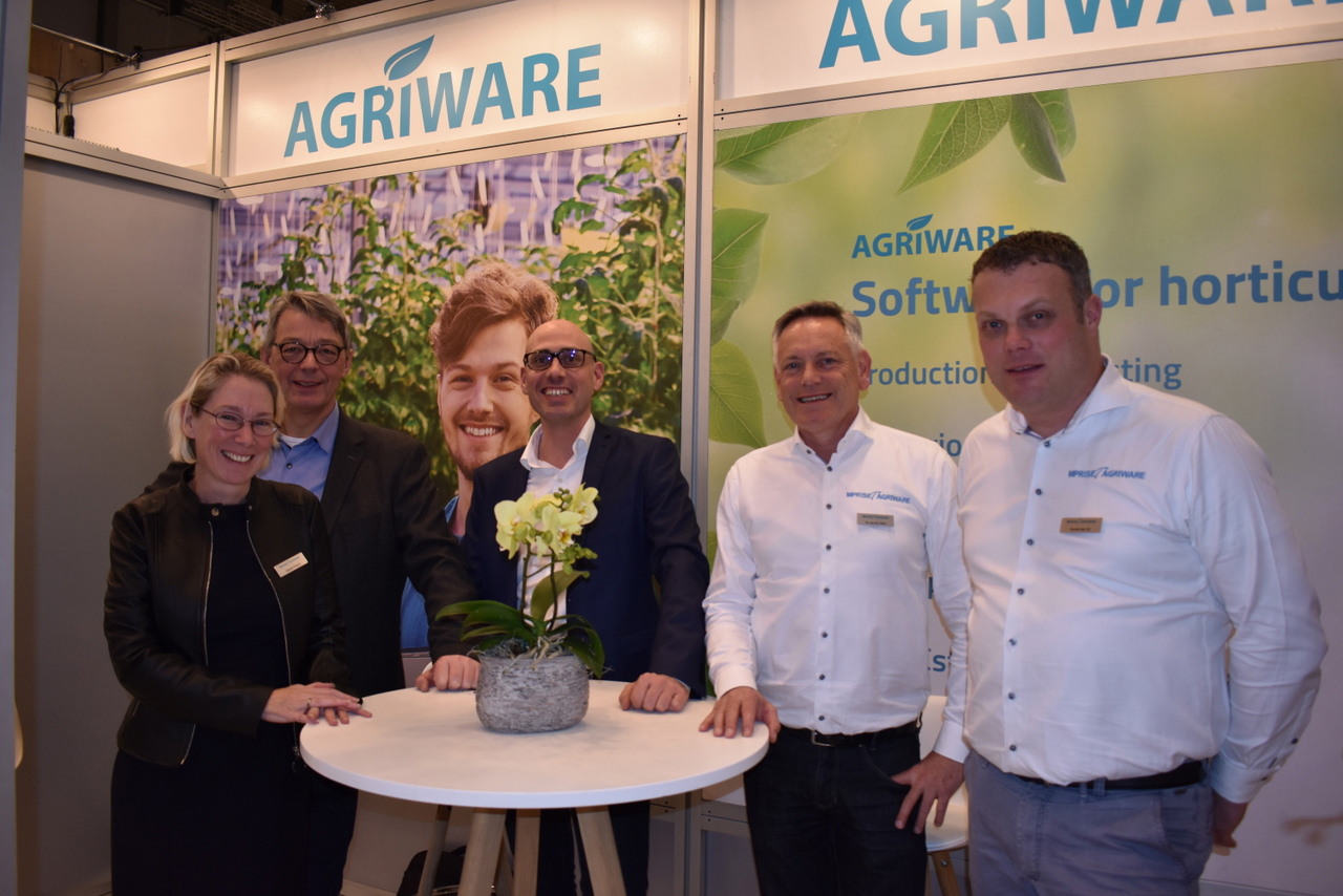 Arjan Hulshoff with De Ruiter Innovations, Matthijs Plas with Modiform and Jelle Posthumus with United Selections and Huub Snijder of De Ruiter Innovations in the United Innovations booth.
