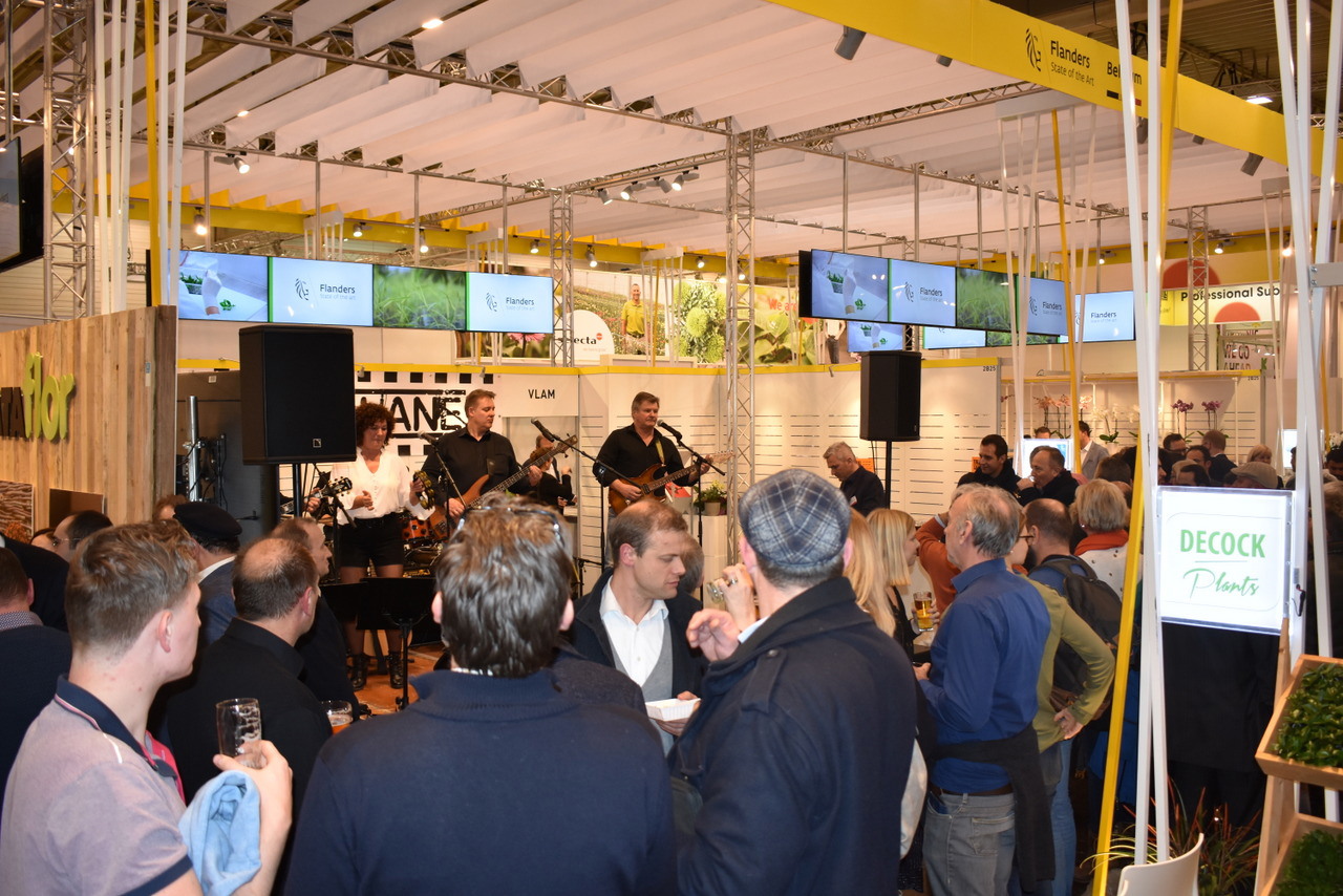 At the end of the first day of the fair, a drink and snack were served at the stand of VLAM while listening to a Belgian band.