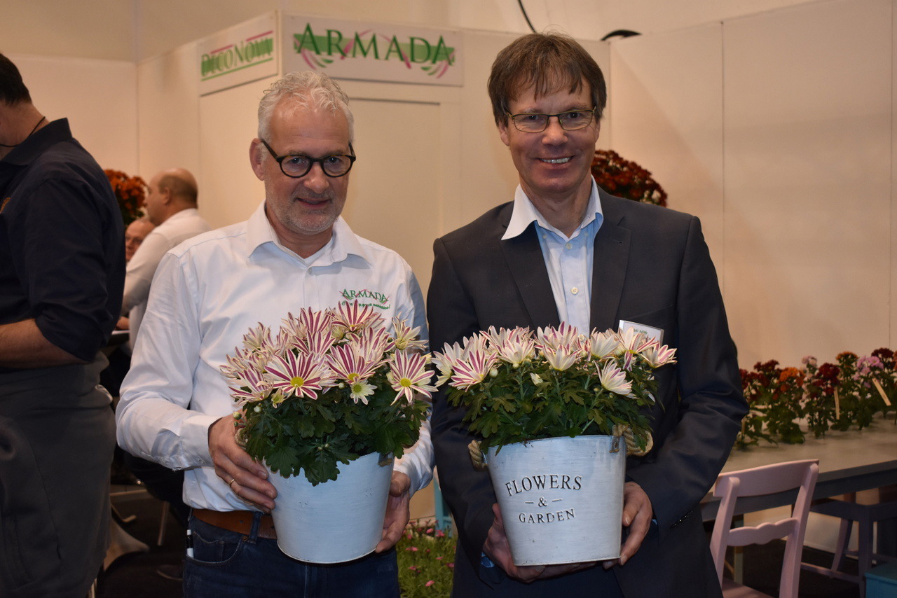 Rene vd Kamp, Gerrard Lentjes, Ed Breedeveld & Thomas Klapdor with Armada / Deconova showed their decorative pot chrysanthemums, mainly popular in China / India.