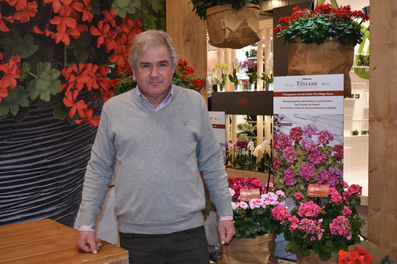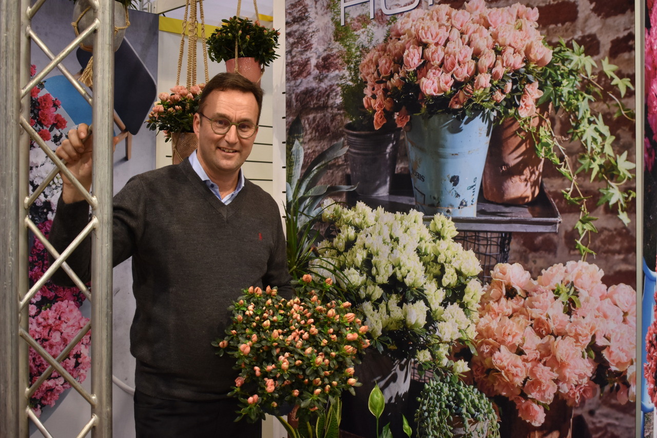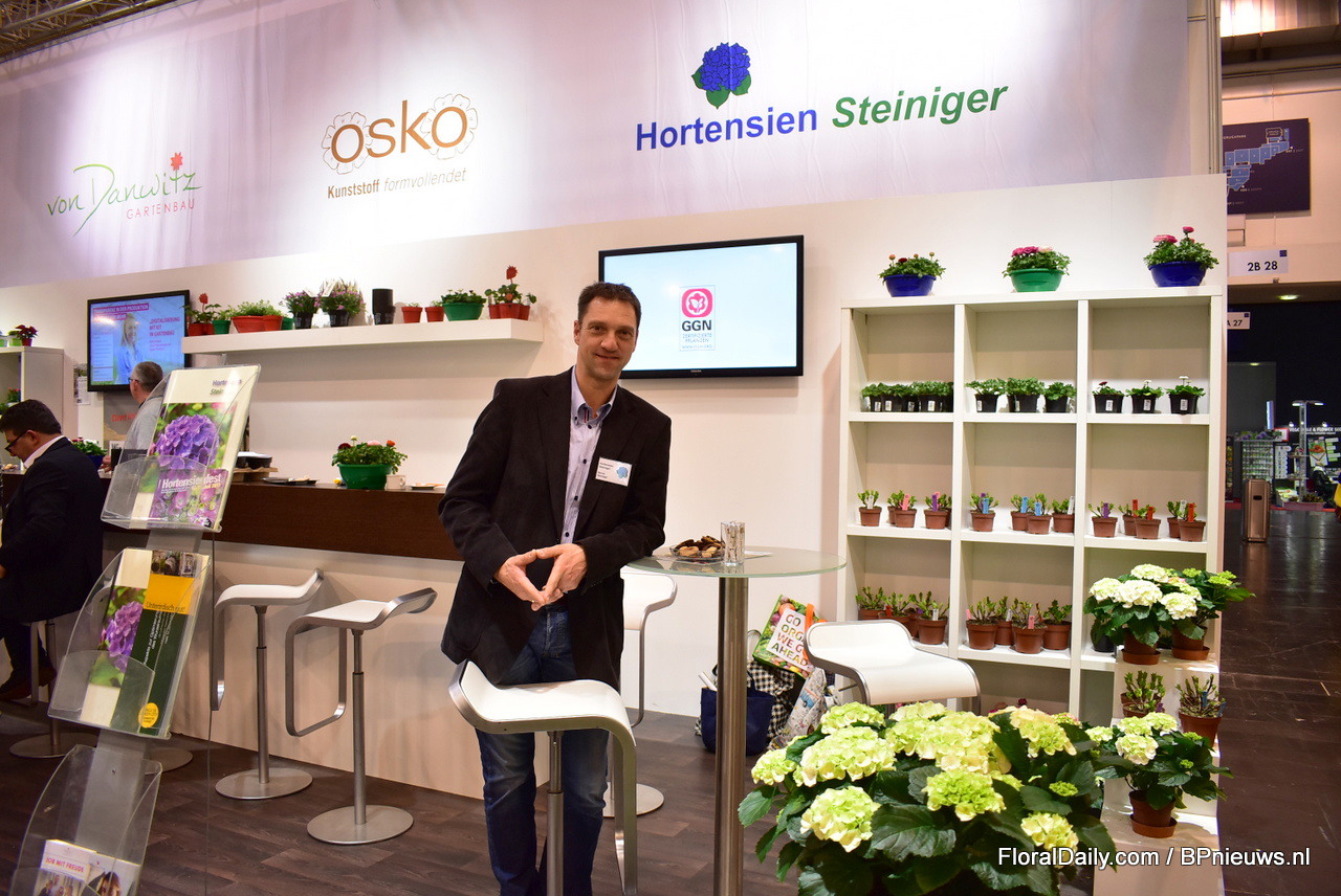 Jürgen Gerdvordermark of Kötterheinrich hortensienkulturen. This year, at their booth, they put the focus on how their products are being delivered.