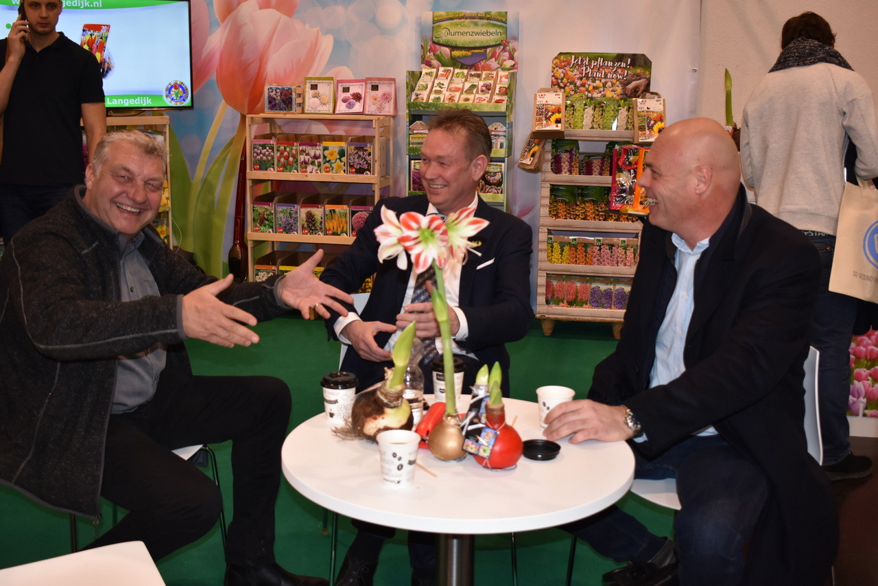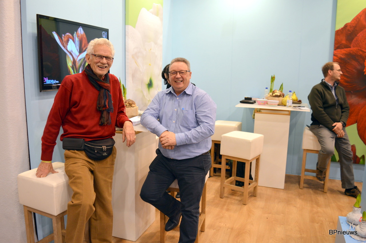 Bill Kempes, amaryllis agent, and Fred Breekhuizen of Sure Plants, together in the stand of Gebr. van Velden (for whom Fred does some of the sales) and of AgroFloralPeru, active in the bulb trade with Europe.