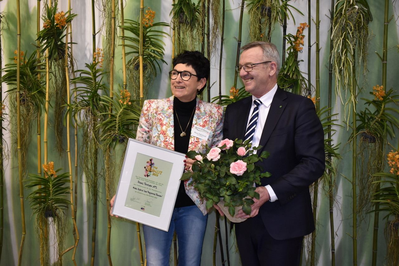 Alexander Letkow and Stefan Heyer of Rosen Tantau. Special attention this year is again given to the Bienweide garden rose range. They have this range for around 5 years now and every year, it is expanded with one or two new varieties. Bees has become a hot topic over the years, so the demand has grown too.
