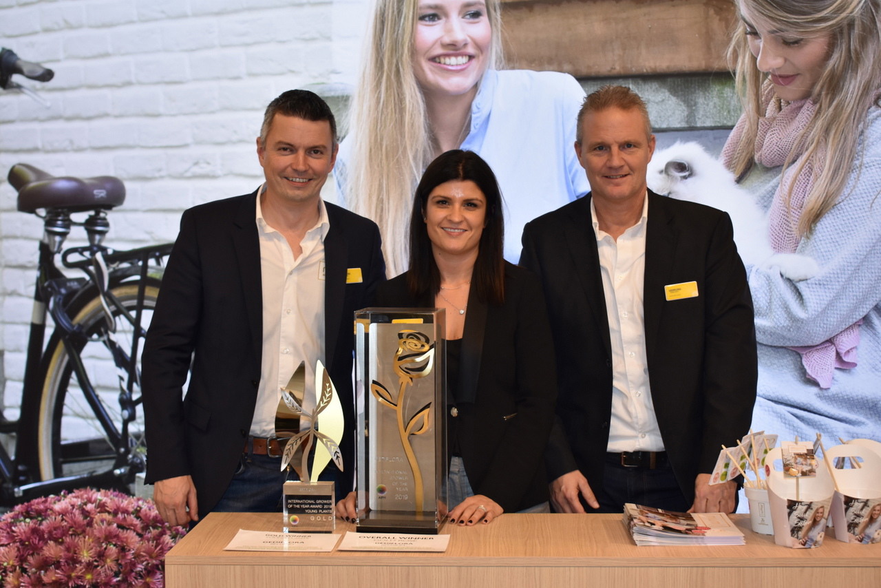 The winner of the prestigious International Grower of the Year Award, Gediflora, shook a lot of hands after winning on Tuesday evening. Pictured here are David Daenens and Elien Pieters